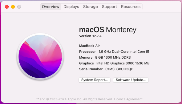 -Operating System: macOS Monterey Version 12.7.4