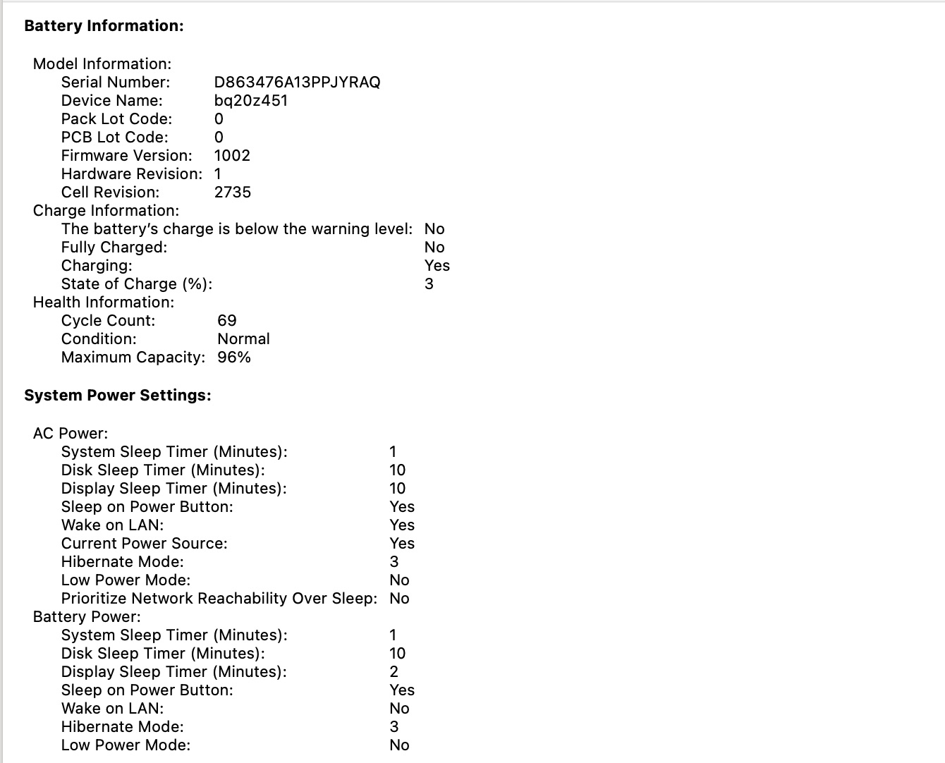 Battery: With a cycle count of 69, we estimate the health at around 90% strong enough for solid daily use, like powering through your commute or a quick coffee shop session. No reported issues.