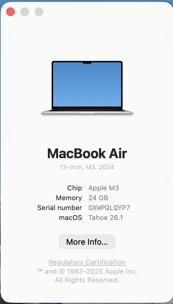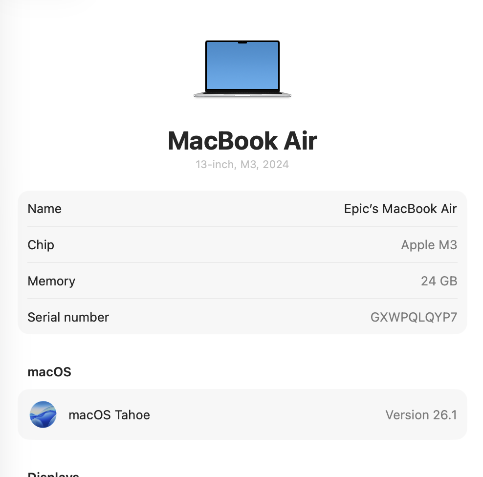 Operating System: macOS Tahoe Version 26.1
