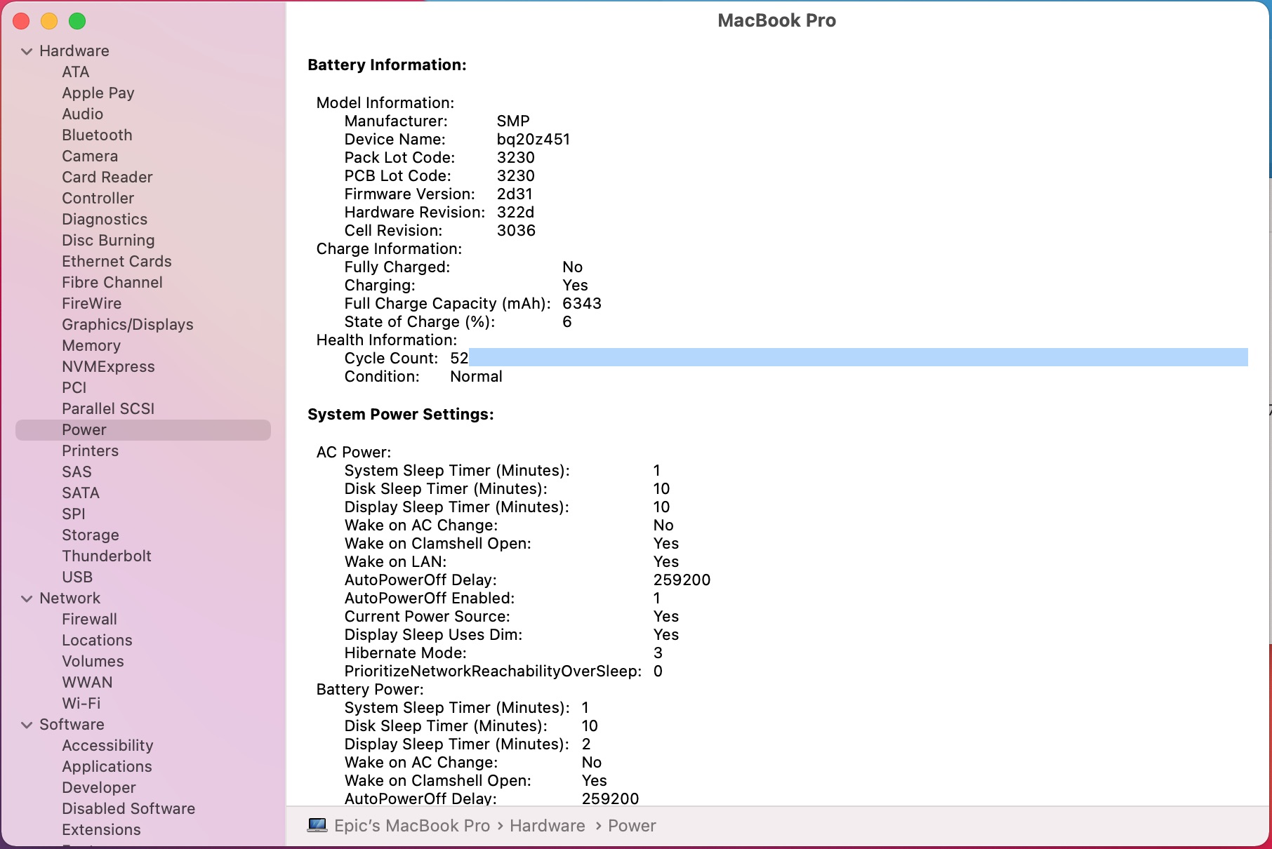 Battery: With a cycle count of 52, we estimate strong health around 85% (based on its age and usage), making it reliable for everyday tasks like web browsing or light editing. No issues reported – it charges and holds power as expected for this grade.