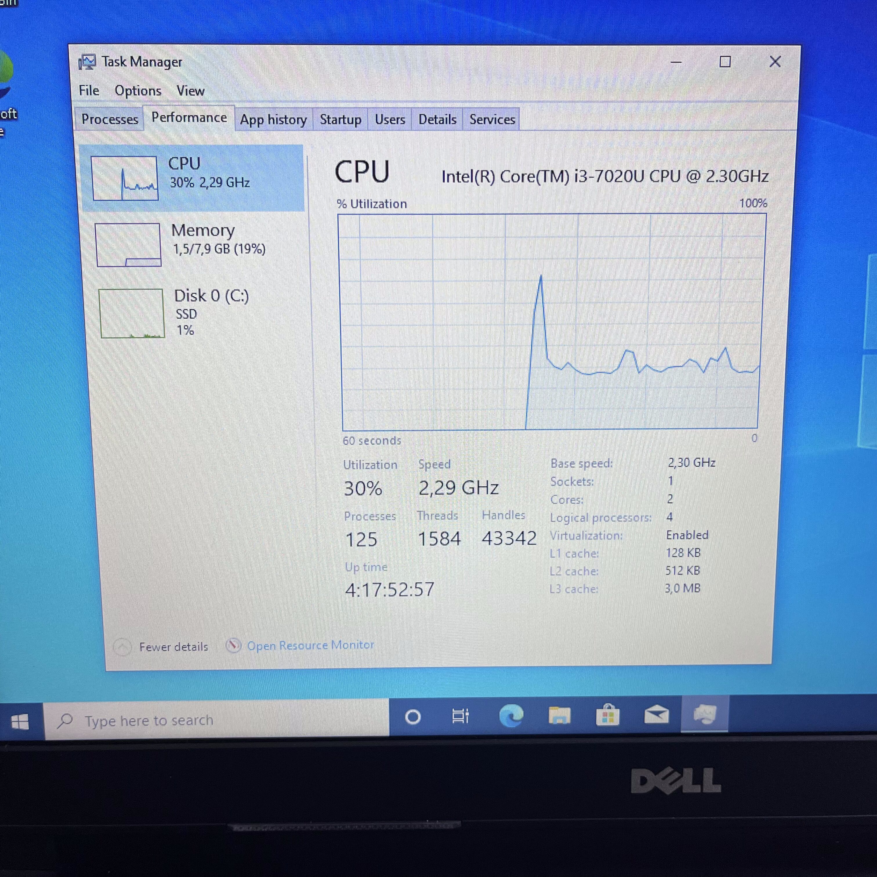 Dell Vostro 15 7th Gen “Core i3” 2.30GHz 8GB RAM 256GB SSD Black – Minor Bright Spots