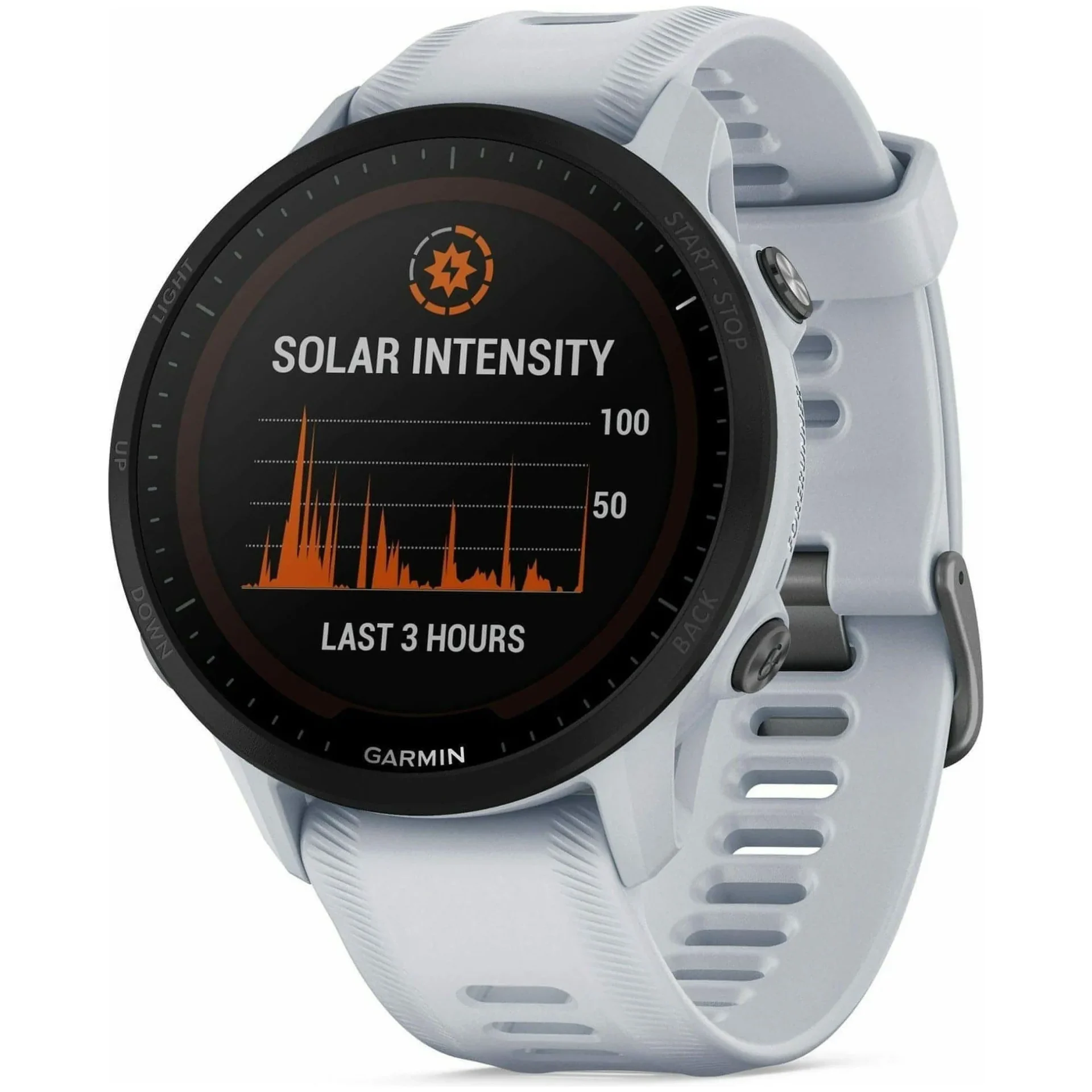 Get ready to boost your fitness game with the Garmin Forerunner 955 Solar in sleek white!