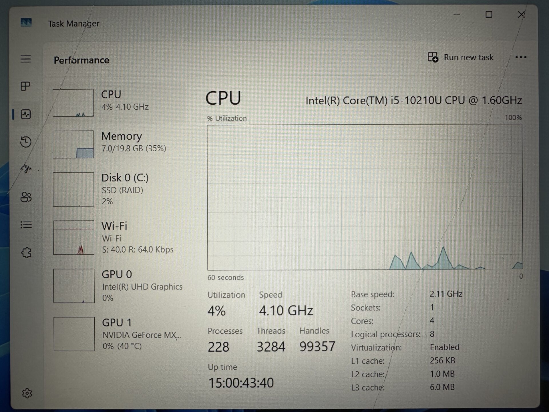 CPU: Intel(R) Core(TM) i5-10210U @ 1.60GHz.