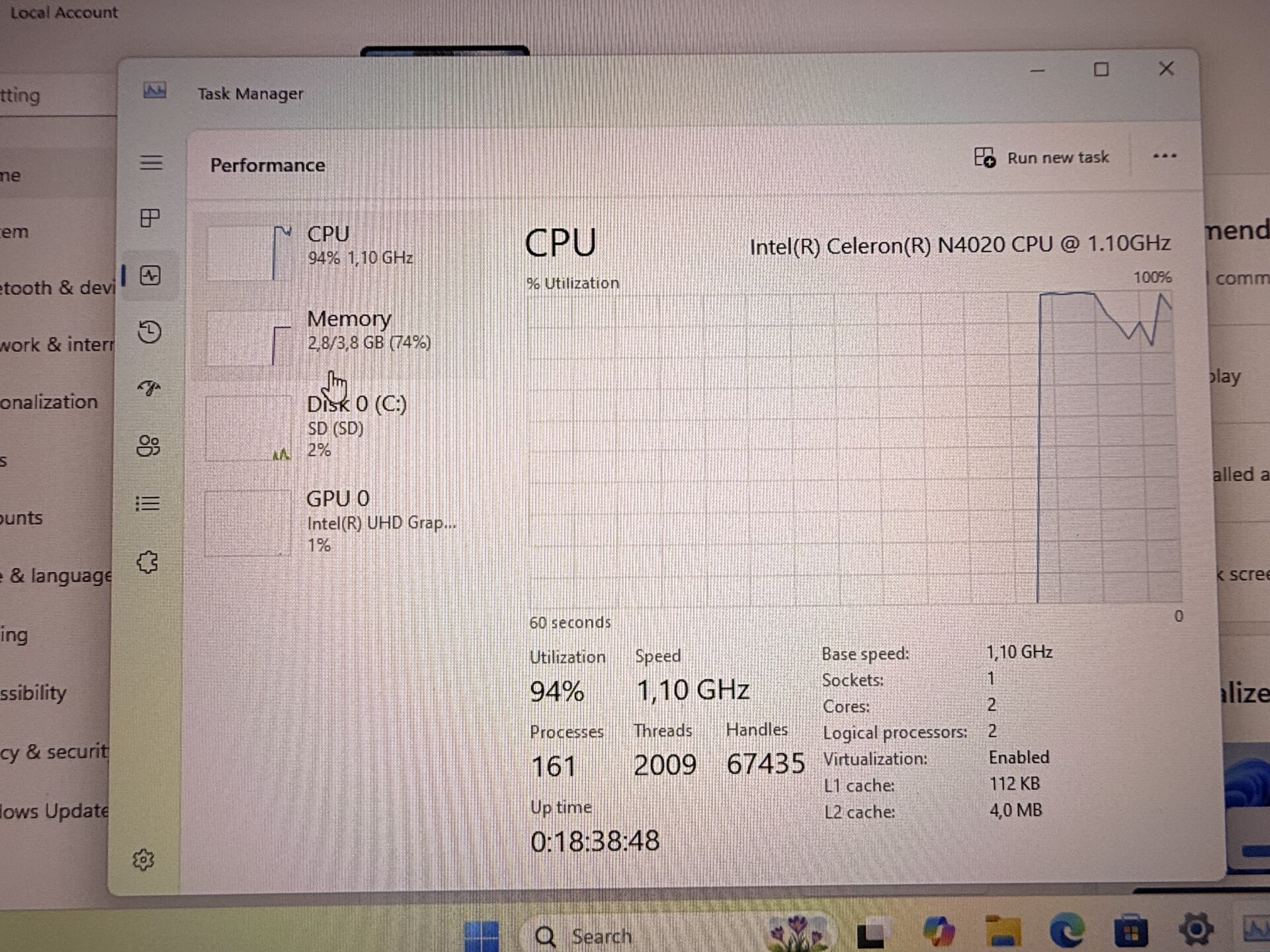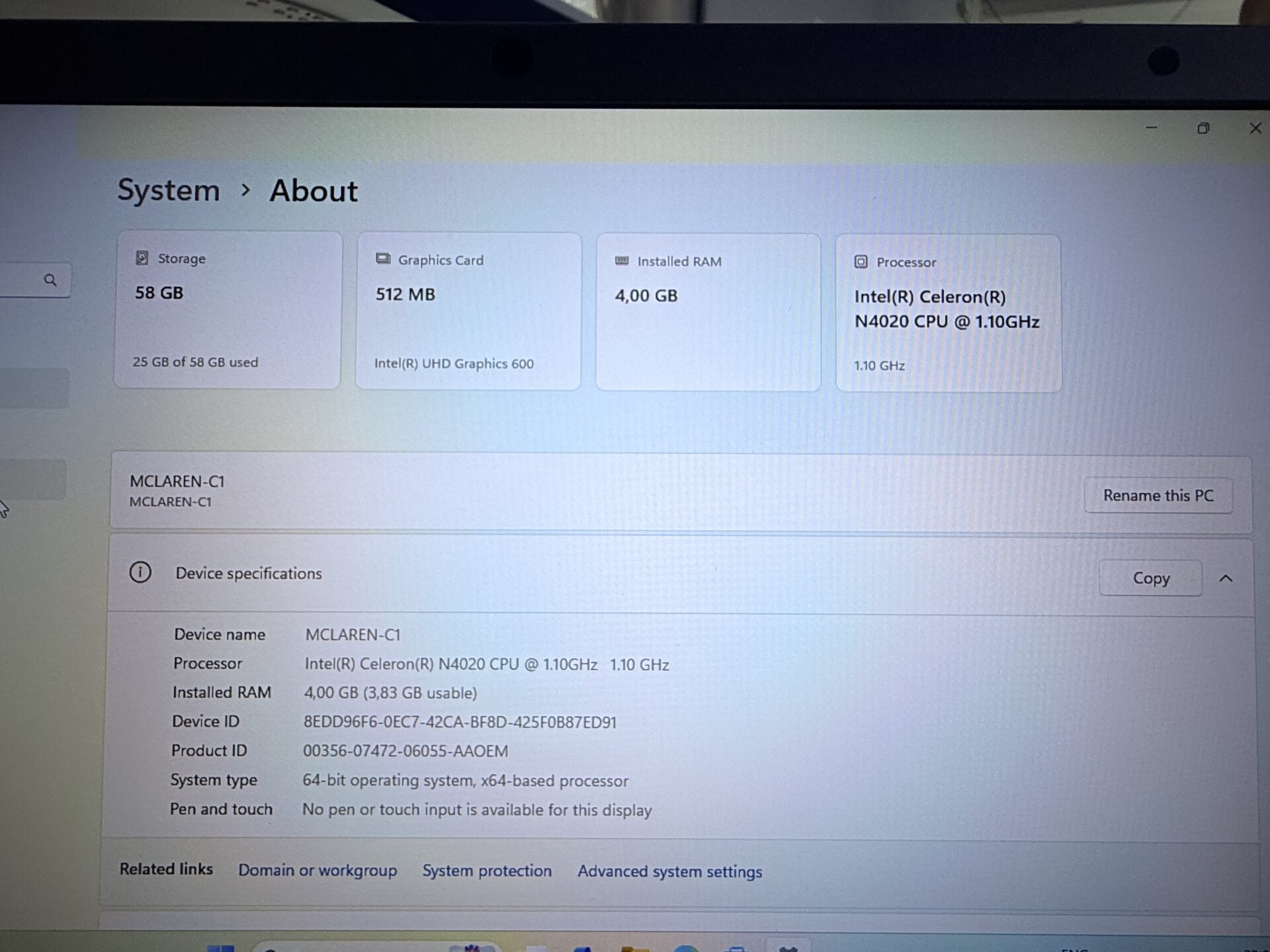 CPU: Intel(R) Celeron(R) N4020 @ 1.10GHz
