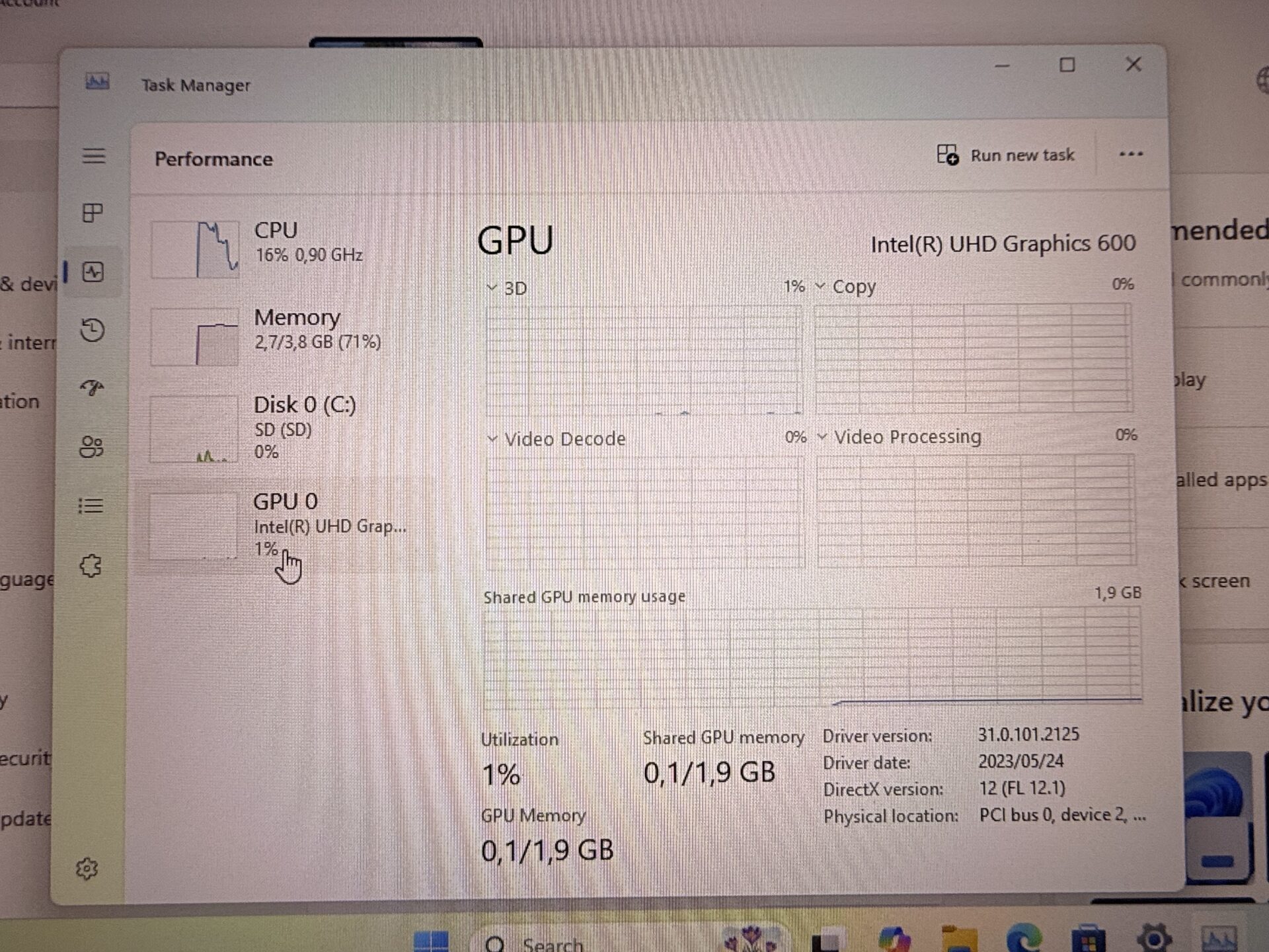 Graphics: Intel(R) UHD Graphics 600